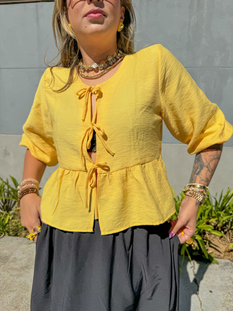 Bata de tecido super levinho e confortável. Possui manga três quartos com elástico para maior conforto. Os lascinhos são super delicados e pode ser utilizada com top por baixo ou até mesmo regatinha para combinar com a parte de baixo.
