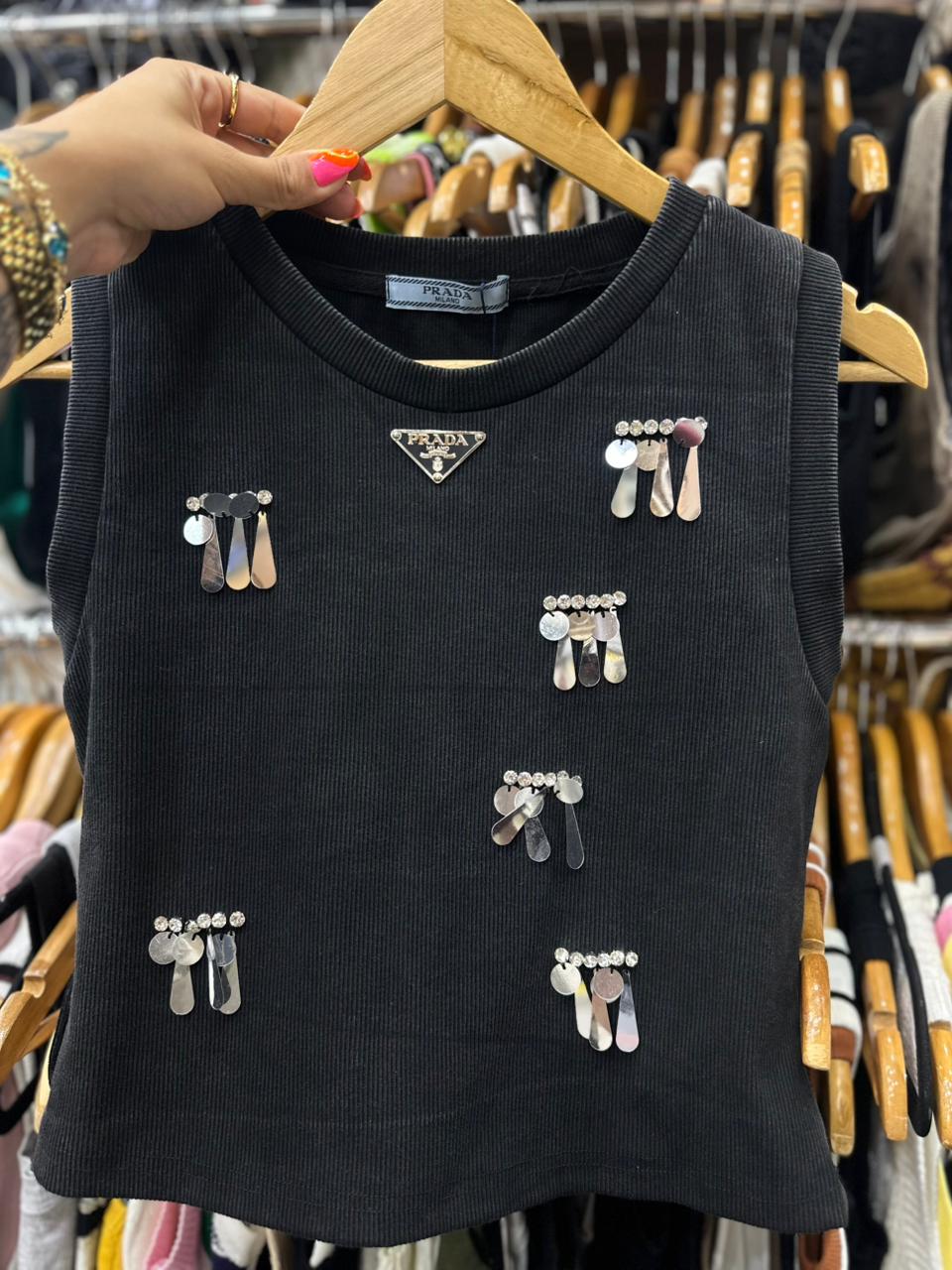 Regata Canelada Black Brilhantes