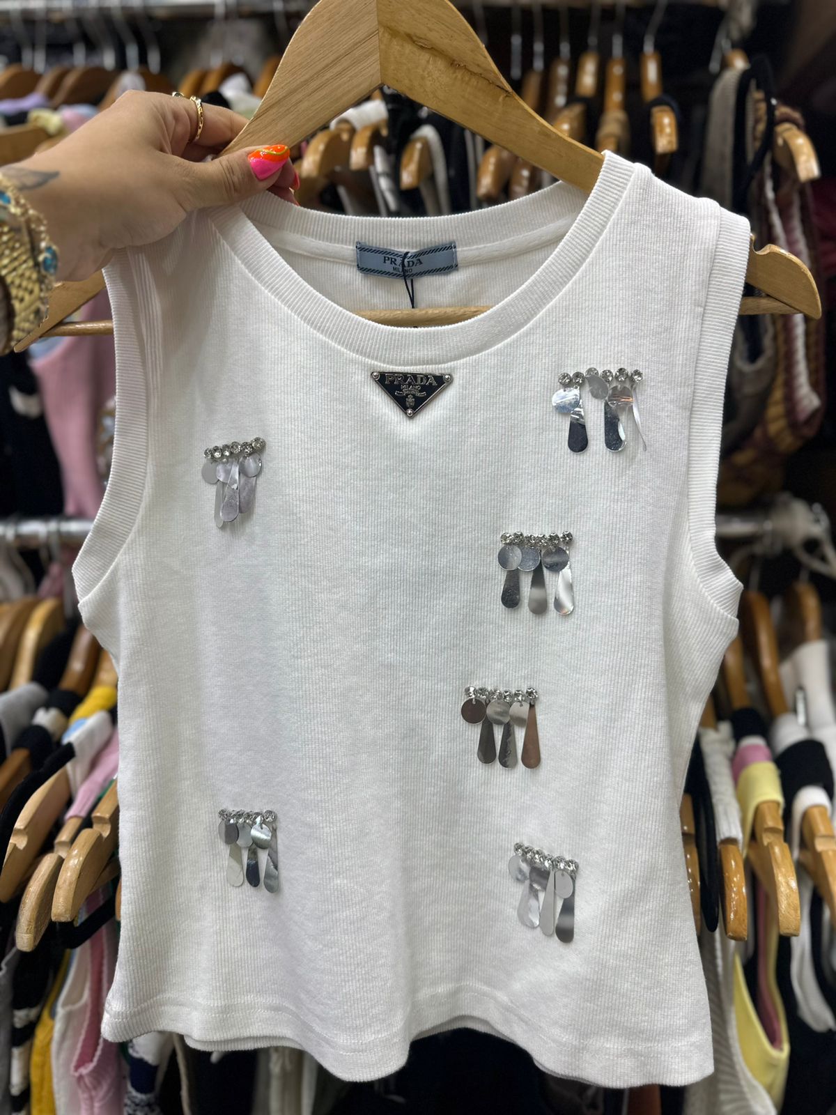 Regata Canelada Off White Brilhantes